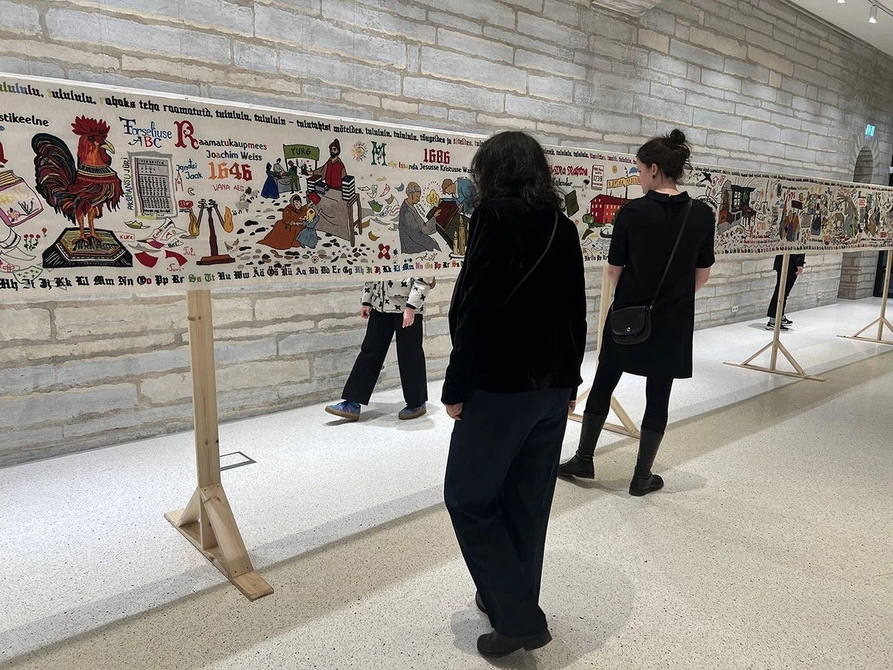 Piltvaip kui võimalus rääkida lugu ja talletada sündmusi pole enneolematu – ajaloo kuulsaim näide on 11.-12. sajandil valminud Bayeux' vaip, mille 70 meetri pikkusele kangale on tikitud stseenid mis kujutavad Inglismaa vallutamist normannide poolt. Mõtte tähistada eesti raamatu 500-aastast ajalugu piltvaibaga, mille valmimisel saaksid kaasa lüüa kõik eestimaalased, käis välja Mart Jagomägi. Krista Aru ettepanekul kaasati idee teostamisse Kõrgema Kunstikooli Pallas tekstiiliosakond ning tudengid kujundasid vaibale Eesti raamatuajaloo tippsündmuste kirjelduste põhjal tiheda pildirea (juhendaja Marju Roos, Aet Ollisaar).